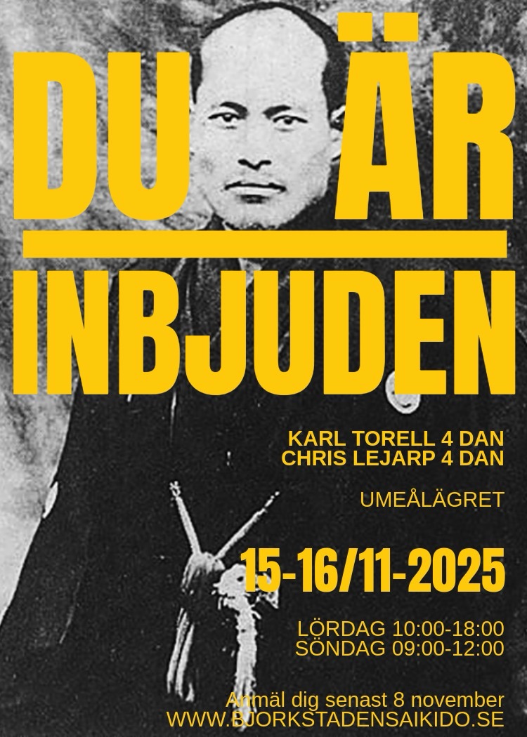 Den här gången (!) gästas vi av Karl Torell, 4 dan (Sollefteå Aikidoklubb) som tränar och undervisar med tydlighet, värme och skön norrlandslogik – och tillsammans med Chris Lejarp, 4 dan (Björkstadens Aikidoklubb) blir det en helg som landar både i kroppen och i kokoro (hjärtat).
