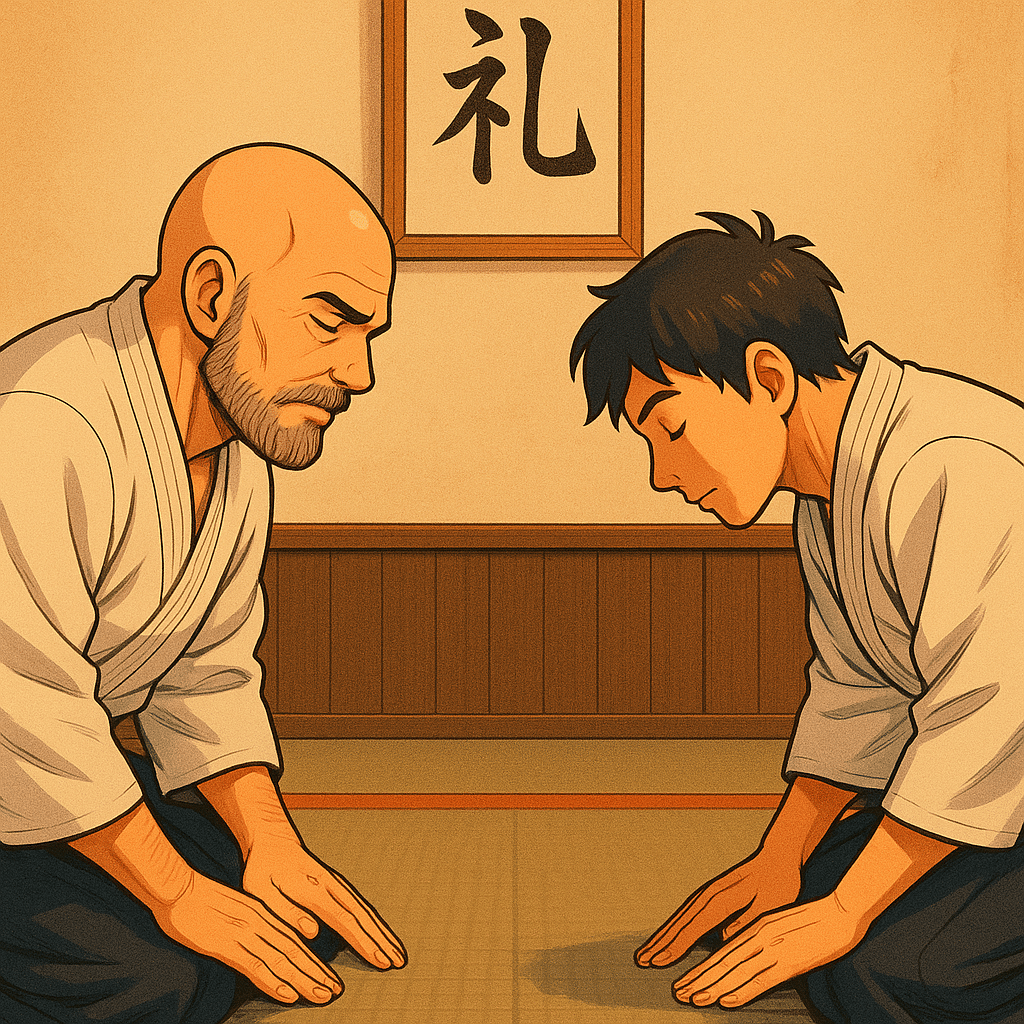 Det är alltså inte bara en symbol – utan en praktisk handling som visar att du erkänner både den andra personen och relationen mellan er. När detta översätts till aikido blir det ett språk som alla kan förstå, oavsett ålder, kön eller nationalitet.